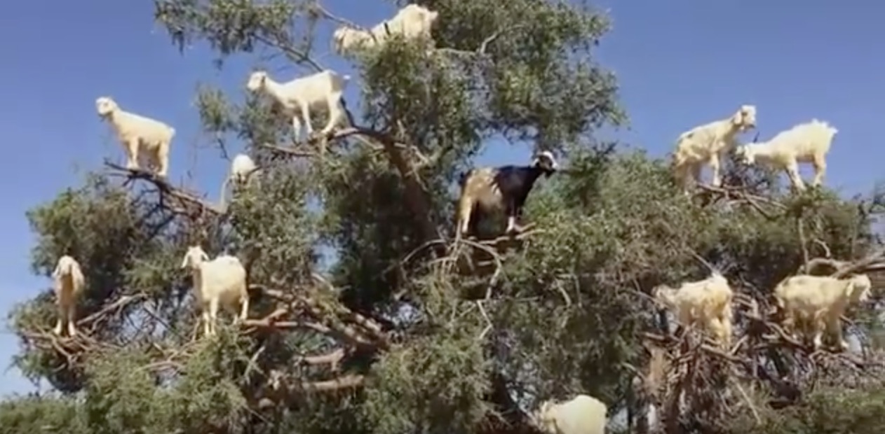 Cela peut paraître surréaliste, mais ces chèvres grimpées dans un arbre ne sont pas le fruit de l'édition photo, c'est une réalité fascinante. Les chèvres sont attirées par les fruits d'arganier, et cette passion pour le fruit a incité ces animaux à apprendre à grimper jusqu'à 8 à 10 mètres de hauteur dans les branches pour les atteindre. L'arganier, un arbre emblématique du Maroc, produit des fruits dont les chèvres raffolent. Ces fruits sont riches en nutriments, et pour satisfaire leur appétit, les chèvres ont développé des compétences d'escalade étonnantes. On les voit souvent perchéées sur les branches, donnant l'impression que l'arbre est décoré de boules de poils. Cette scène insolite mais bien réelle illustre l'ingéniosité des animaux pour s'adapter à leur environnement et satisfaire leurs besoins alimentaires. Les chèvres arboricoles sont devenues une curiosité locale et une attraction naturelle, témoignant de la relation unique entre les animaux et les ressources naturelles dans cette région du Maroc.